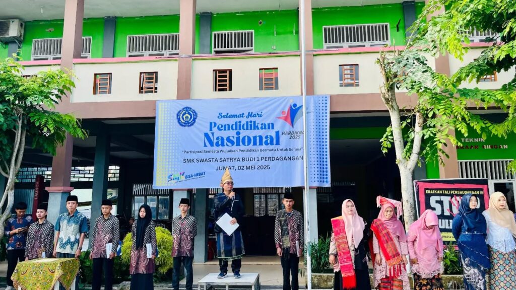 Perdagangan, 2 Mei 2025 — Dalam rangka memperingati Hari Pendidikan Nasional (Hardiknas) 2025, SMK Swasta Satrya Budi 1 Perdagangan, yang dikenal sebagai SMK Favorit dan Sekolah Terbaik di Simalungun, menyelenggarakan upacara bendera dengan penuh khidmat pada Jumat (2/5/2025). Seluruh peserta upacara, termasuk guru dan siswa, mengenakan pakaian adat dari berbagai daerah di Indonesia, menampilkan semangat kebinekaan dan kekayaan budaya Nusantara.